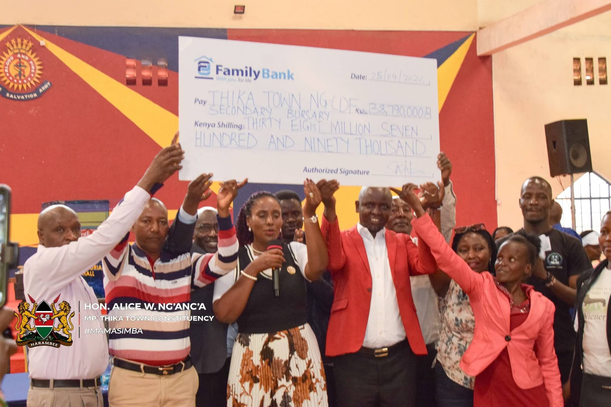 Thika Town MP Alice Ng’ang’a over the weekend oversaw the disbursement of KSh38.79 million in bursaries to support students in secondary and special schools drawn from Township and Hospital wards.