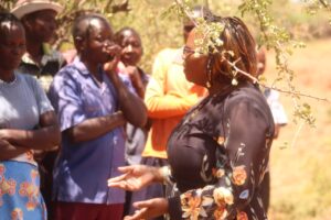 Aspiring Tharaka Nithi woman MP pastor Lucy Wanja interects with residents of Kiumbe village in Gatunga ward, Tharaka North Subcounty