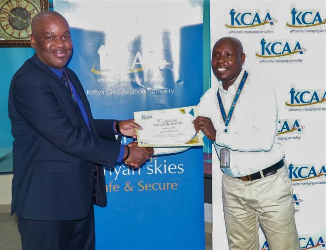 Njeri – EASA, George Mbugua – Internal Audit department, and Justus Kurgat – Aviation Safety Security and Regulation for exemplary customer-focused service delivery.”