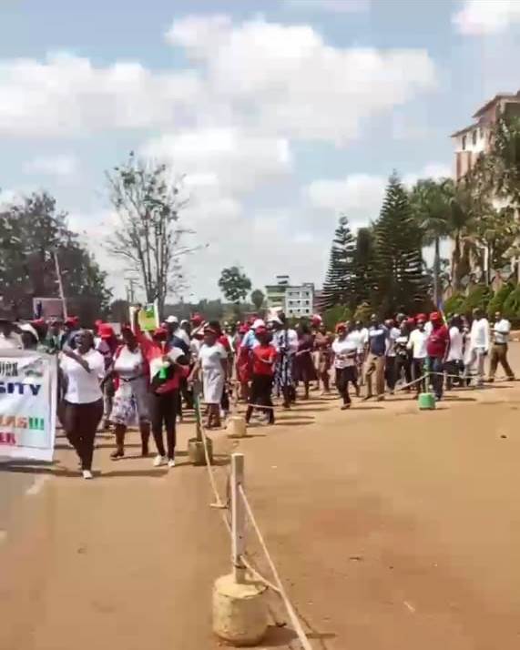 At Chuka University, the strike began promptly at 9 a.m. on Monday, 18th September. Lecturers, armed with vuvuzelas, whistles, and burners, gathered at Gate C, the main entrance to the university, before moving towards Gate A, which sits adjacent to the Meru-Nairobi highway. The march was characterized by loud chants, placards, and a vibrant display of solidarity among the academic staff. The noise and energy of the demonstration disrupted the usual tranquility of the campus and spilled into the nearby highway, attracting the attention of motorists and passersby.