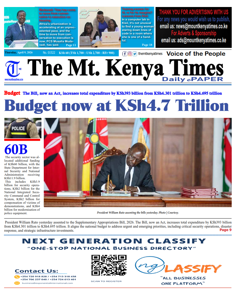 We are The Mount Kenya Times. For customer care, 📨 info@mountkenyatimes.co.ke or 📞 +254700161866 For feedback to editorial, 📨 news@mountkenyatimes.co.ke or 📞 +254705215262 or WhatsApp +254714090155