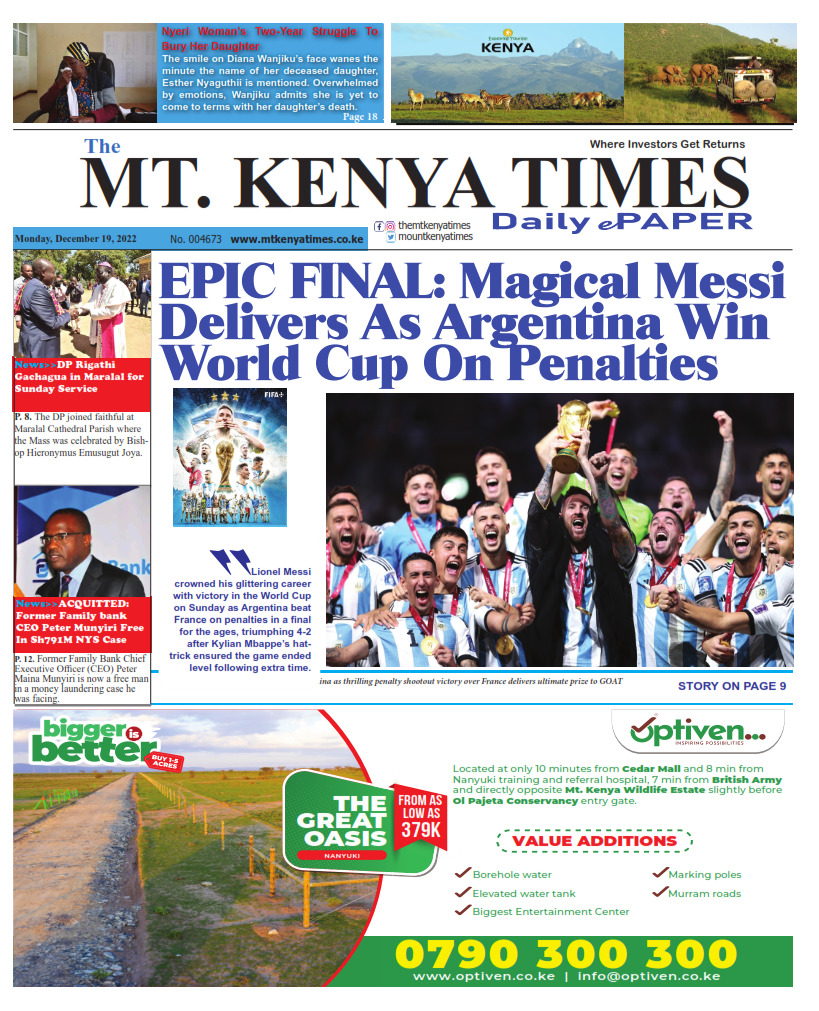 We are The Mount Kenya Times. For customer care, 📨 info@mountkenyatimes.co.ke or 📞 +254700161866 For feedback to editorial, 📨 news@mountkenyatimes.co.ke or 📞 +254705215262 or WhatsApp +254714090155