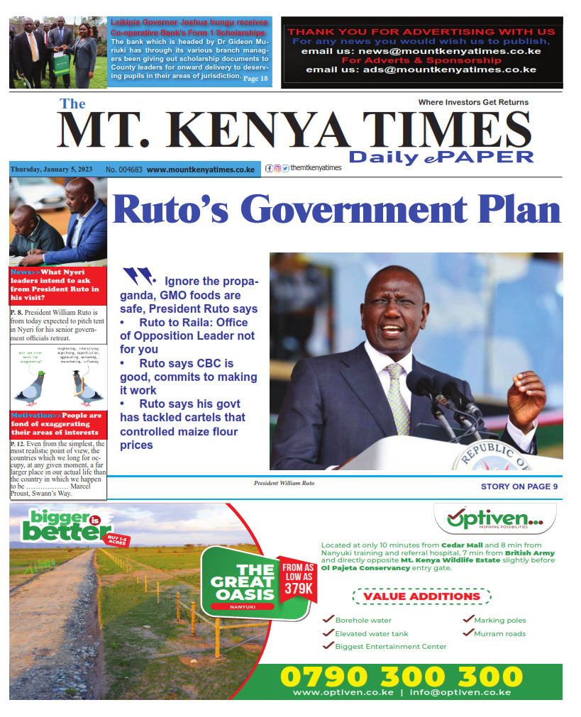 The Mount Kenya Times Click Here to Read>>> Post navigation Mt Kenya Times ePAPER January 4, 2023Mt Kenya Times ePAPER January 6, 2023
