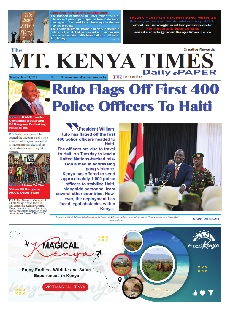 The Mount Kenya Times Click here to Read>>> Loading... Taking too long? Reload document | Open in new tab Click here to Download ePaper>>> Post navigation Mt Kenya Times ePAPER June 24, 2024Mt Kenya Times ePAPER June 26, 2024