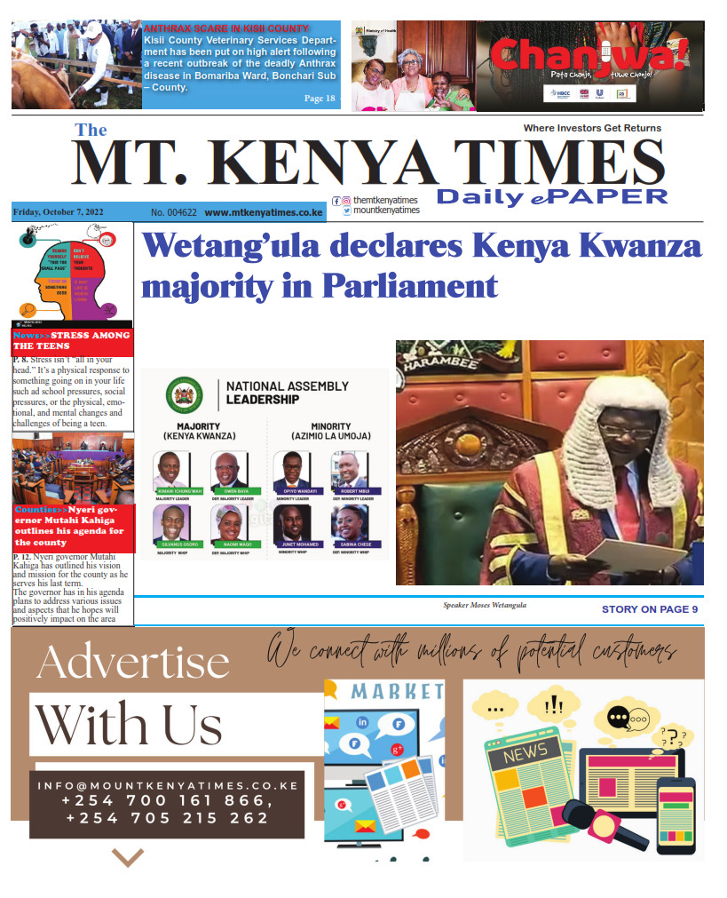 We are The Mount Kenya Times. For customer care, 📨 info@mountkenyatimes.co.ke or 📞 +254700161866 For feedback to editorial, 📨 news@mountkenyatimes.co.ke or 📞 +254705215262 or WhatsApp +254714090155