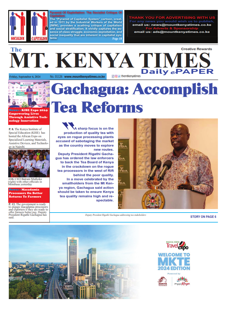 The Mount Kenya Times Click here to Read>>> Loading... Taking too long? Reload document | Open in new tab Click here to Download ePaper>>> Post navigation Mt Kenya Times ePAPER September 5, 2024Mt Kenya Times ePAPER September 7-8, 2024