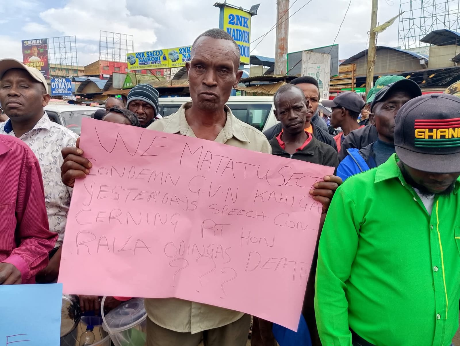 A section of Nyeri Town residents and the local business community yesterday condemned the utterances made by Nyeri Governor Mutahi Kahiga over the demise of former Prime Minister Raila Odinga. They expressed their disappointment over the remarks, emphasizing the need for sensitivity and respect during such critical times.