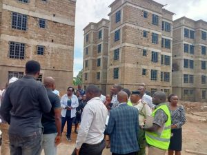 A team from the National Government Co-ordination Secretariat (NGCS), alongside representatives from the Ministry of Foreign and Diaspora Affairs and the Ministry of Interior and National Administration, is inspecting the affordable housing complex at Milimani Estate in Kakamega County. The project features 220 housing units, being constructed by the national government at a cost of Sh431 million. This inspection is part of a broader initiative to fast-track the completion of high-impact projects in the Western and Nyanza regions. The Western Regional Commissioner, Irungu Macharia (third left in uniform), is leading the coordination of this important exercise.