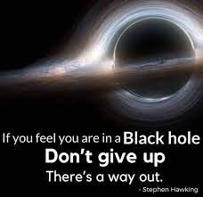 The message of this lecture is that black holes ain’t as black as they are painted. They are not the eternal prisons they were once though things can get out of a black hole both on the outside and possibly to another universe. So if you feel you are in a black hole, don’t give up there’s a way out…………. Stephen Hawking.
