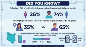 According to the 2024 GSMA  Mobile Gender Gap Report, women occupy fewer than 30 per cent of ICT roles in Kenya, with representation in AI and machine learning even lower. In Kisii and across the country, young women are increasingly entering digital spaces, but often under constrained conditions.